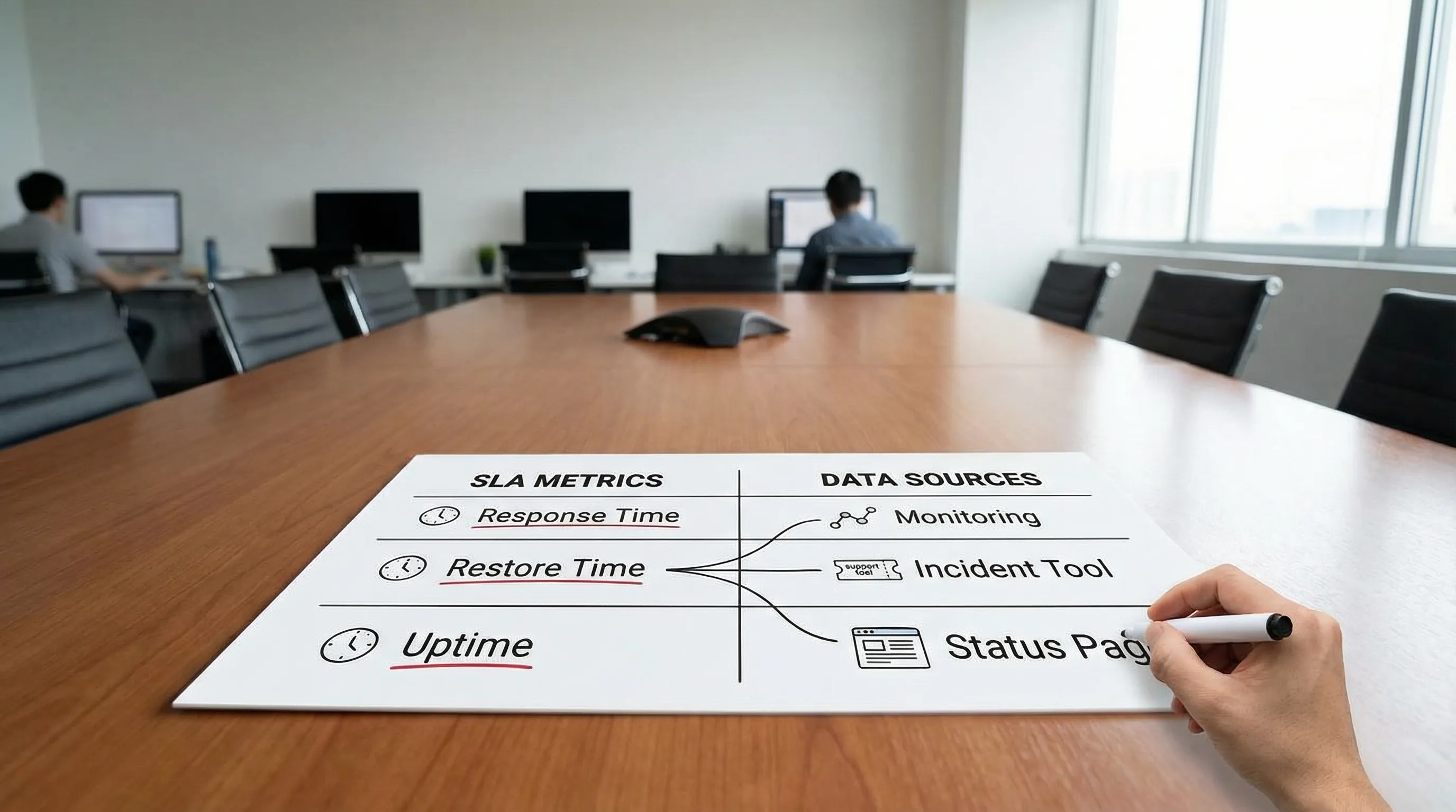 - Measurement method (how uptime is calculated, what monitoring is authoritative)