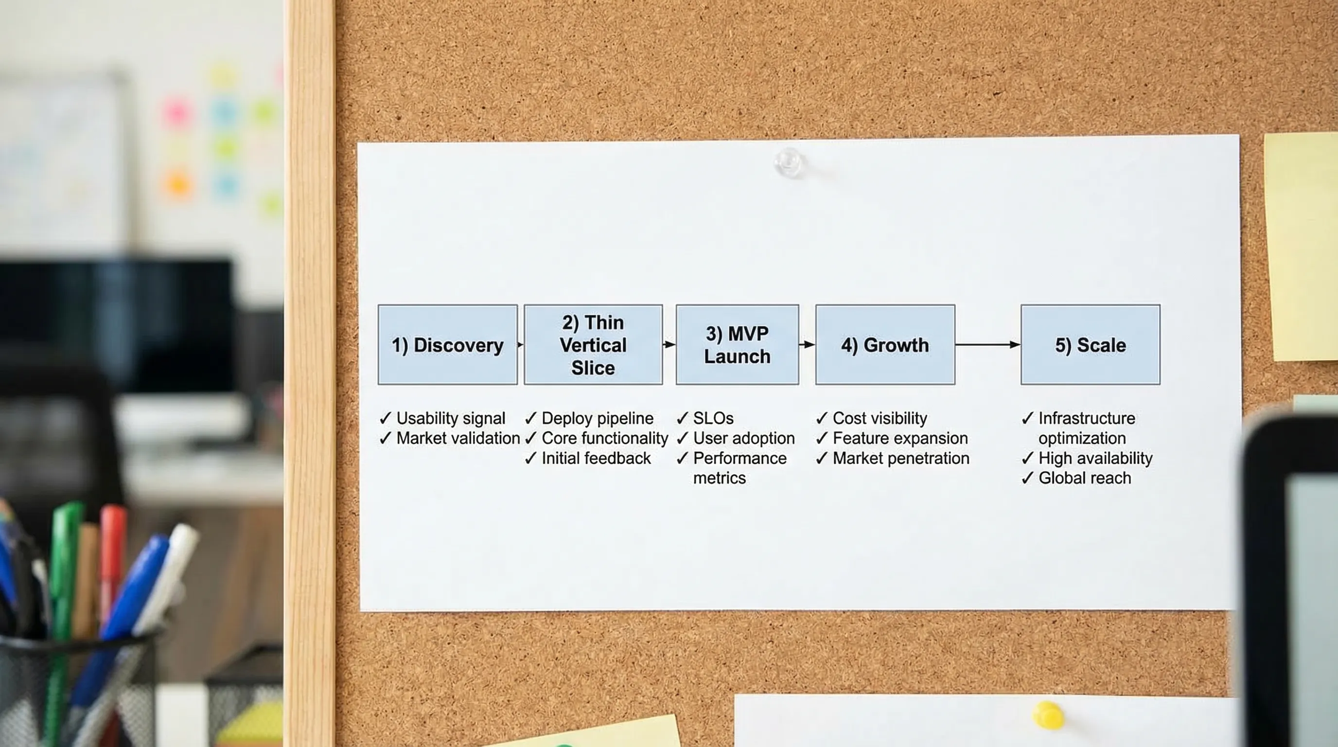 This guide lays out a practical path from MVP to scale, with the deliverables and metrics that matter when you want to ship fast without painting yourself into a corner.