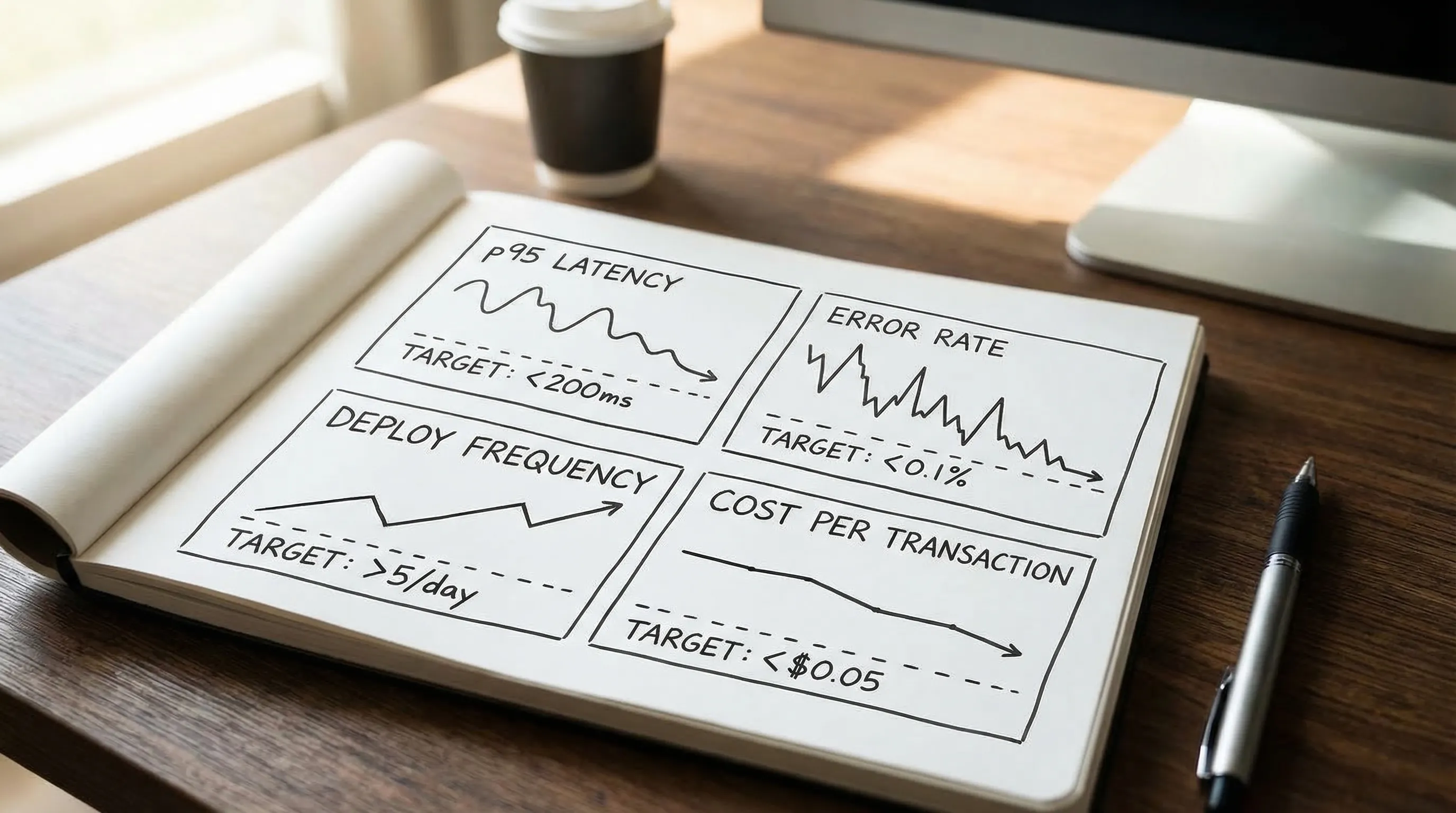 - Reliability signals: error rate and p95 latency for the core flow