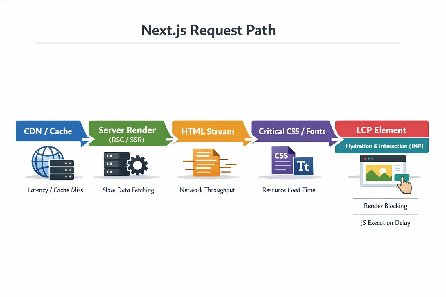 Performance issues in a Next.js app rarely come from a single “slow” line of code. They are usually the result of small inefficiencies stacking up across rendering, data fetching, images, JavaScript execution, third party scripts, and infrastructure. The good news is that Next.js gives you strong primitives for fixing each layer, as long as you approach tuning as a measurement-driven workflow.