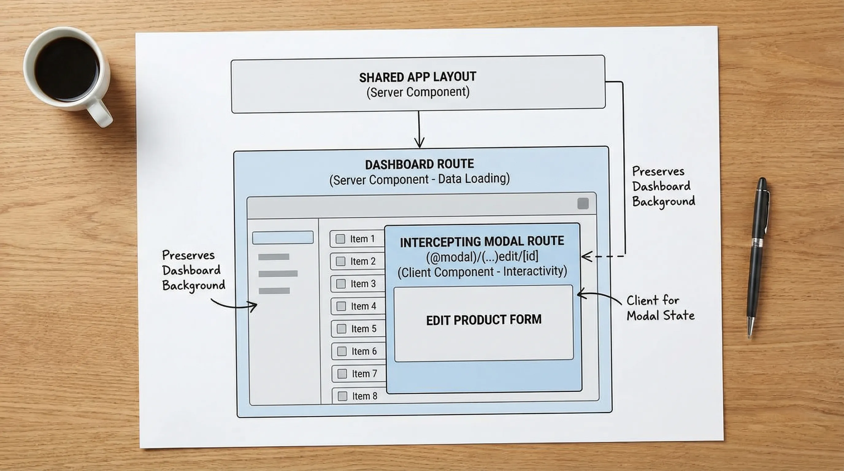 "use client"): every time you cross it, you pay in bundle size and hydration. - Layouts are composition units: they are not just for nav bars, they are where you define data and UI boundaries for whole product areas.