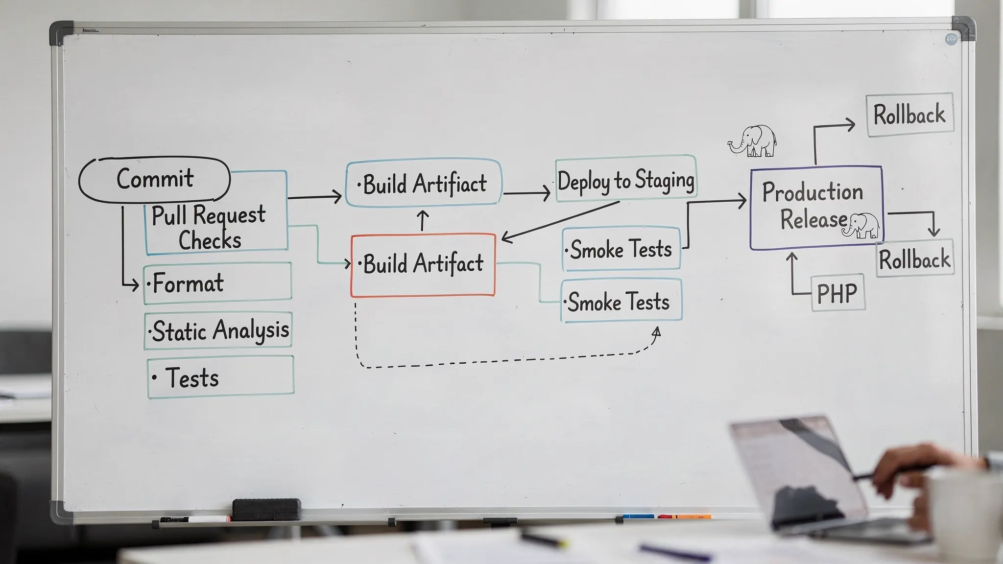 Most PHP release failures are not “mysterious production bugs”. They are predictable outcomes of weak guardrails: inconsistent code style, missing types, risky refactors without tests, unreviewed dependency changes, and last-minute deployment surprises.