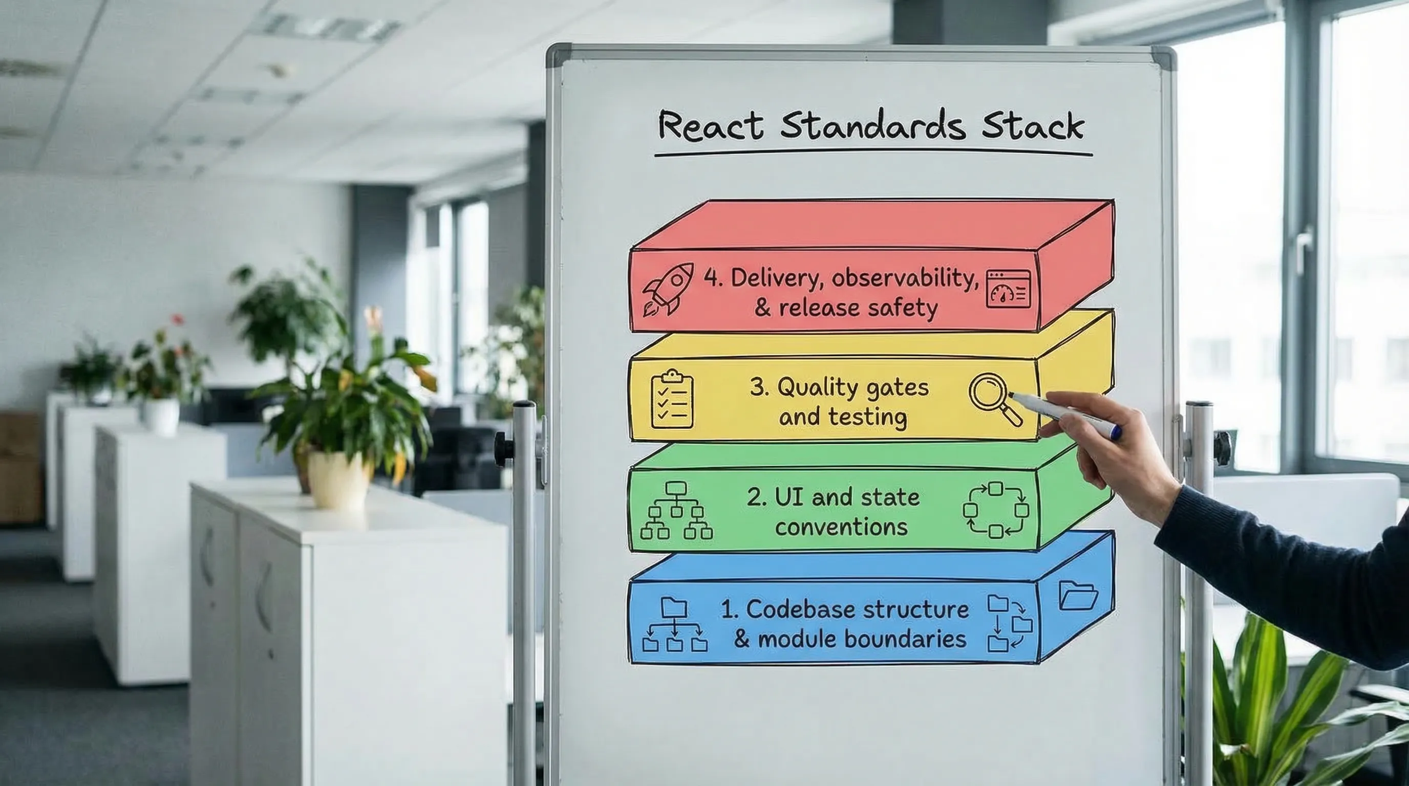 React teams rarely fail because they chose the “wrong” UI library. They fail because the codebase becomes hard to change: inconsistent patterns, unclear boundaries, slow feedback loops, and standards that live in someone’s head.