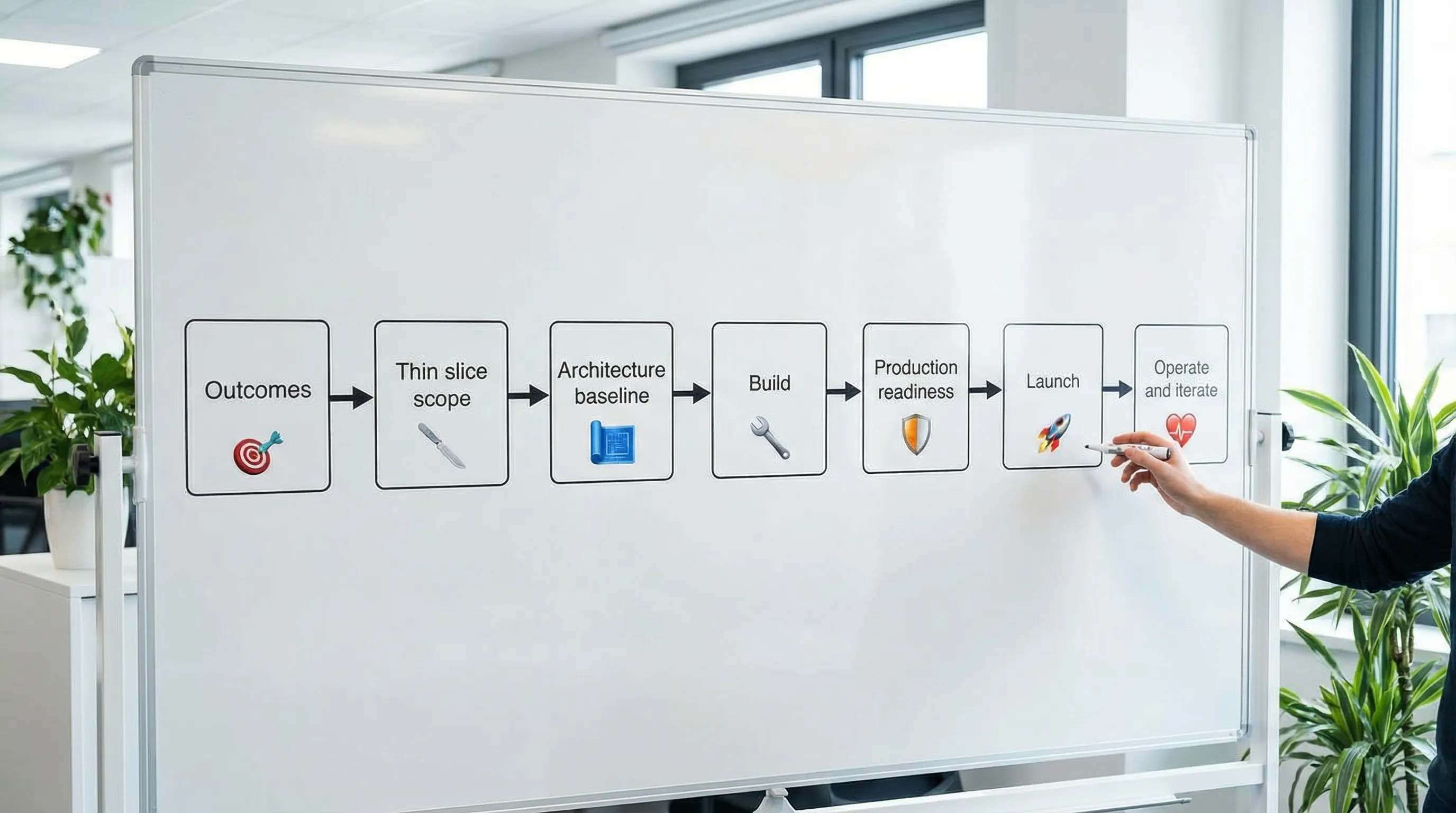 This guide lays out a practical software building process for busy teams: a lightweight set of stages, artifacts, and quality gates that help you ship faster without betting the company on a rewrite or a heroic launch.