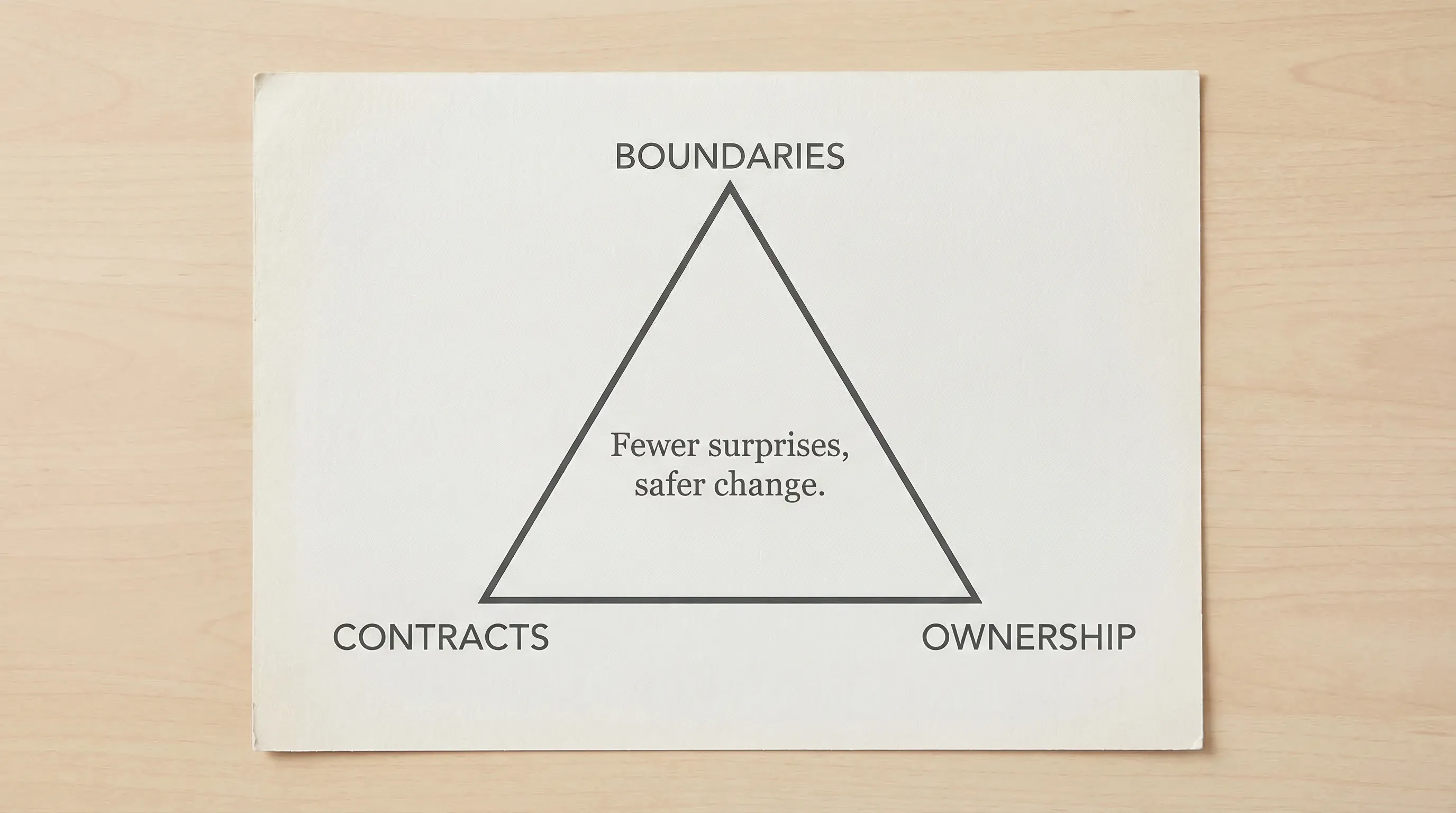 When leaders say “we need better architecture,” they often mean “we need fewer surprises.” Fewer surprises come from making three things explicit: boundaries, contracts, and ownership.