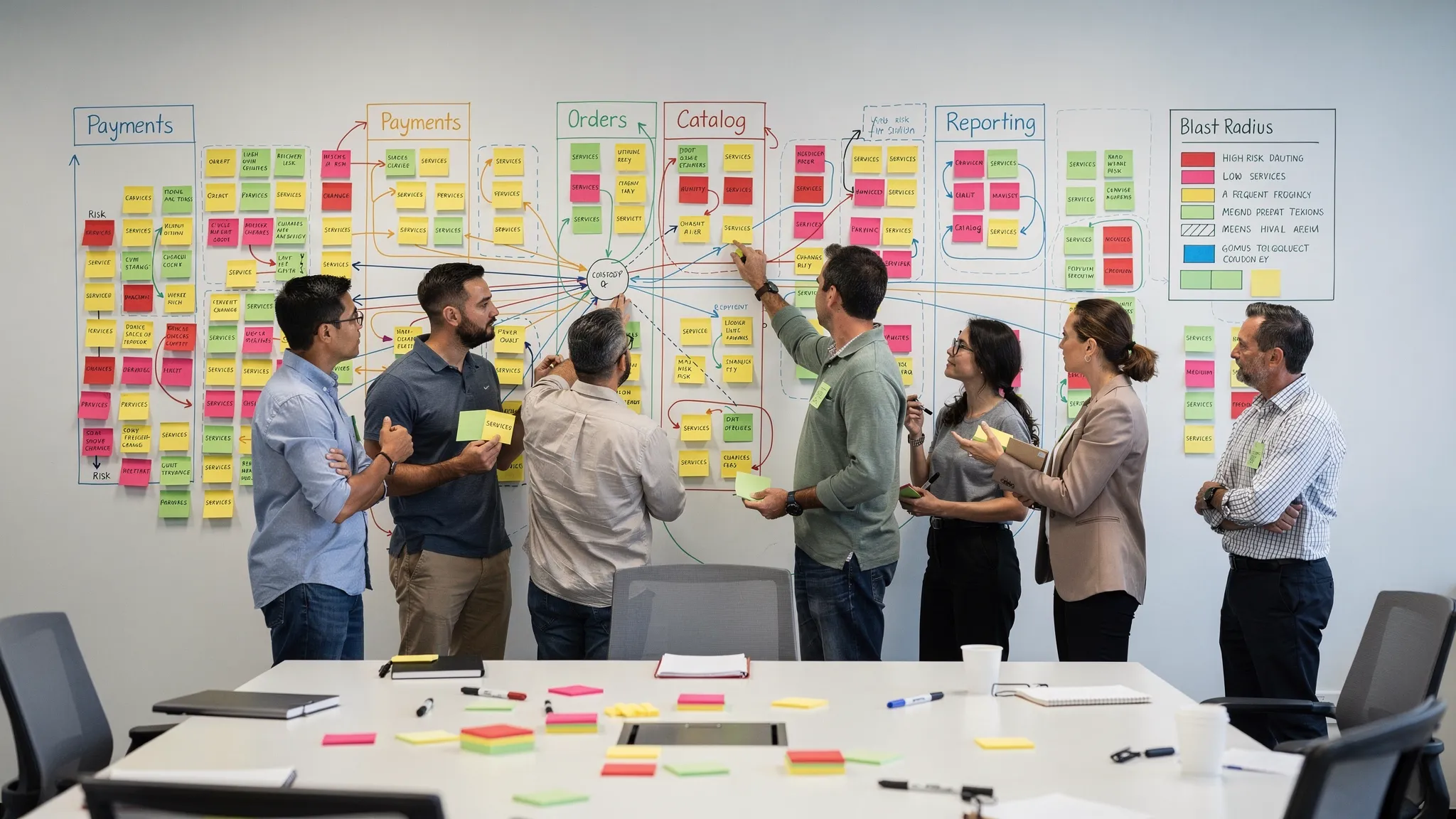 | Payments | High | Weekly | High | Anti‑corruption layer, strangler around checkout |