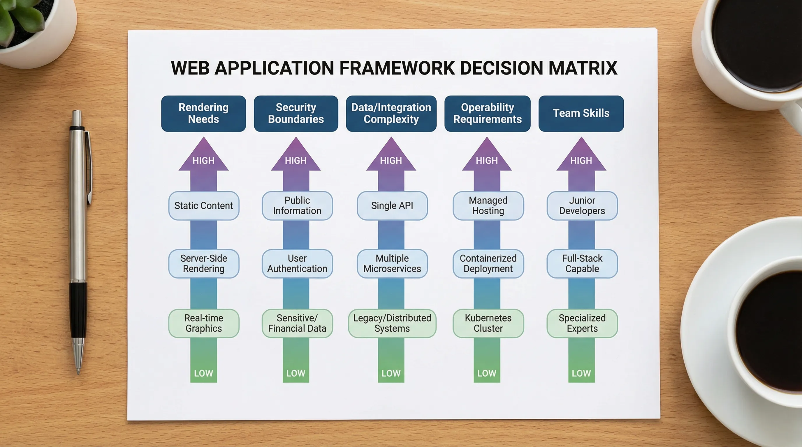 What is the best web application framework in 2026? There is no single best framework. The best choice depends on your rendering needs, security boundaries, data complexity, operability requirements, and the skills you can sustain for 18 to 36 months.