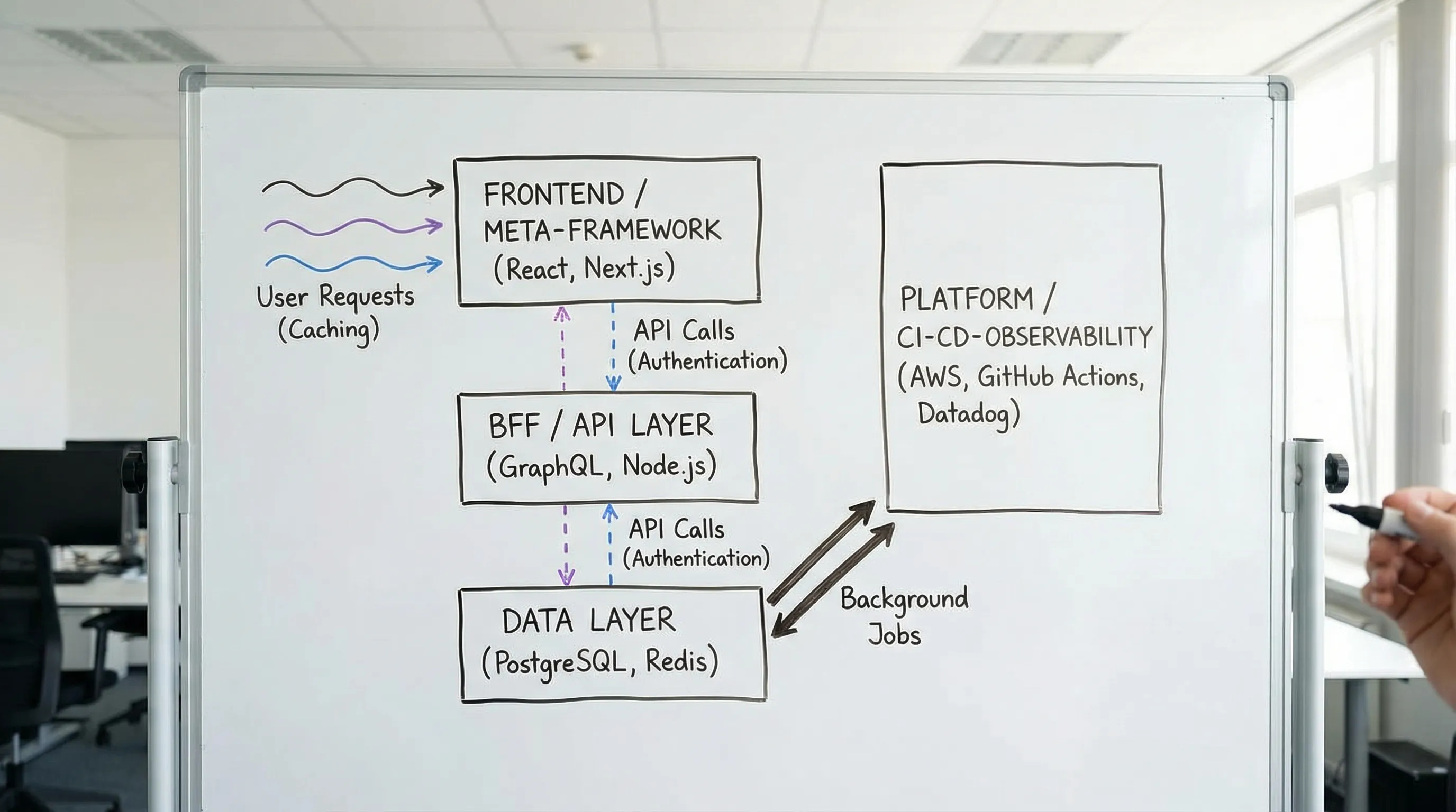 | E-commerce or transactional flows | Next.js (careful caching) | Backend with strong domain + reliability patterns | Correctness, latency, and payment/integration safety dominate |